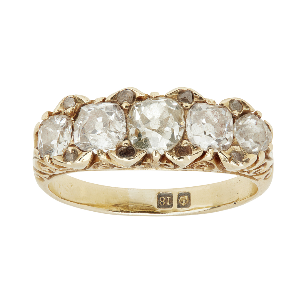 A Victorian five stone diamond set ring
