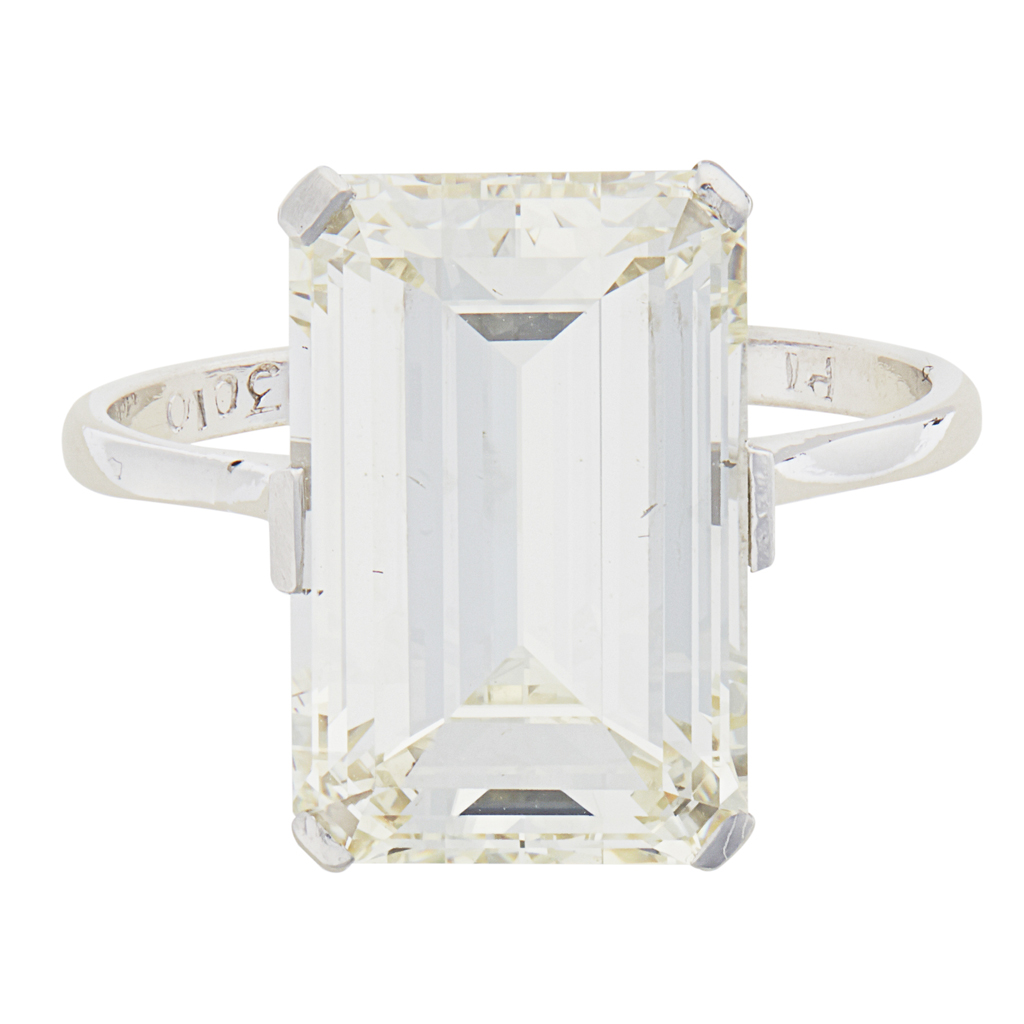 claw set with a single trap cut diamond, to a plain unmarked white metal shank