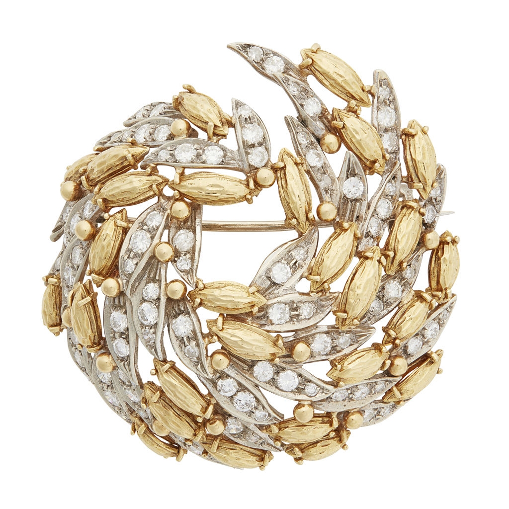 of textured circular outline, set at intervals with small round cut diamonds, stamped 750 to reverse