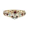 of openwork hinged design, set throughout with pearls, round mixed cut garnets and turquoise cabochons, marked on clasp 18c