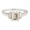 claw set with an emerald cut diamond, flanked by collet set baguette cut diamonds, to a plain shank marked for London, 1984, accompanied by a report from the Gem Testing Laboratory of Great Britain, dated 12 December 1996, numbered LON0055130, stating the principal diamond is 1.00ct., E colour and SI1 clarity