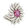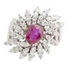 claw set with an oval mixed cut ruby, in a surround of radiating round brilliant cut diamonds; with accompanying report by the International Gemological Institute, Dubai, dated 08.10.2002, numbered D2E92354 stating the ruby is natural with indications of heat treatment