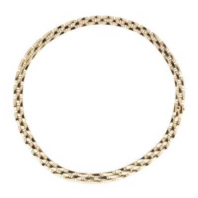 composed of three rows of slightly curved rectangular links, to a concealed clasp, signed Cartier, stamped 750 with French marks, numbered 781182, in a Cartier red suede pochette