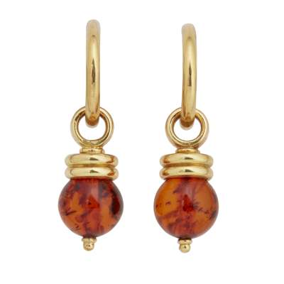 each formed as hoop with a detachable amber bead pendant, stamped 750 to loop clasp