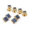 comprising a pair of cufflinks and four dress studs, each panel mystery set with cailbré cut sapphires, Birmingham, 1995 and signed 'D&F' probably for Deakin & Francis