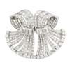 of scrolling fanned design, pavé set throughout with graduated round brilliant cut diamonds, each clip with a lower border of graduated round brilliant cut diamonds and channel set with a central row of graduated baguette cut diamonds, each with double pin fitting