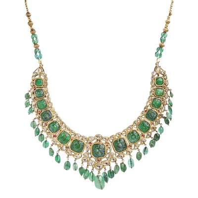 An Indian diamond, emerald and ruby set and diamond set necklace