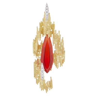 An Arts and Crafts opal, mother-of-pearl and enamel brooch, attributed to Arthur and Georgie Gaskin, circa 1912