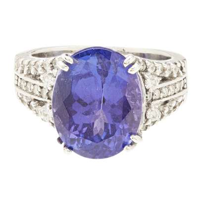 A 14ct white gold Tanzanite and diamond set cocktail ring