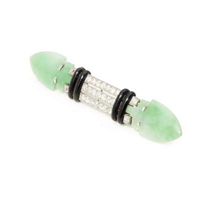 An Art Deco diamond, jade and enamel set brooch, Boucheron