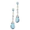 each with a pear shaped mixed cut aquamarine drop dependent from articulated panels pavé set with diamonds, the post fittings with London hallmarks for 2011, butterfly backs