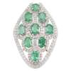 lozenge shaped, claw set with nine oval mixed cut emeralds each within a cluster of pavé set diamonds