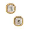 each set with a table-cut diamond within shaped rectangular mounts, the reverse with flowers enamelled in blue, cream and translucent green enamel, to post and butterfly backs