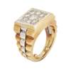 claw set with a central round brilliant cut diamond, surrounded by eight round brilliant cut diamonds, within a bi-colour ridged mount, British hallmarks for London, 1995