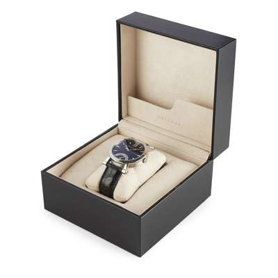 Sotirio Retrograde, Ref. SB42SDR, polished stainless steel case, black dial, polished hour indicators, sweep second hand, retrograde date arch, automatic movement, visible to rear, stitched leather strap, Bulgari buckle, with presentation box