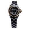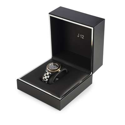 J12, quartz, black dial, diamond set hour indicators, screw down crown, polished ceramic bracelet, with box
