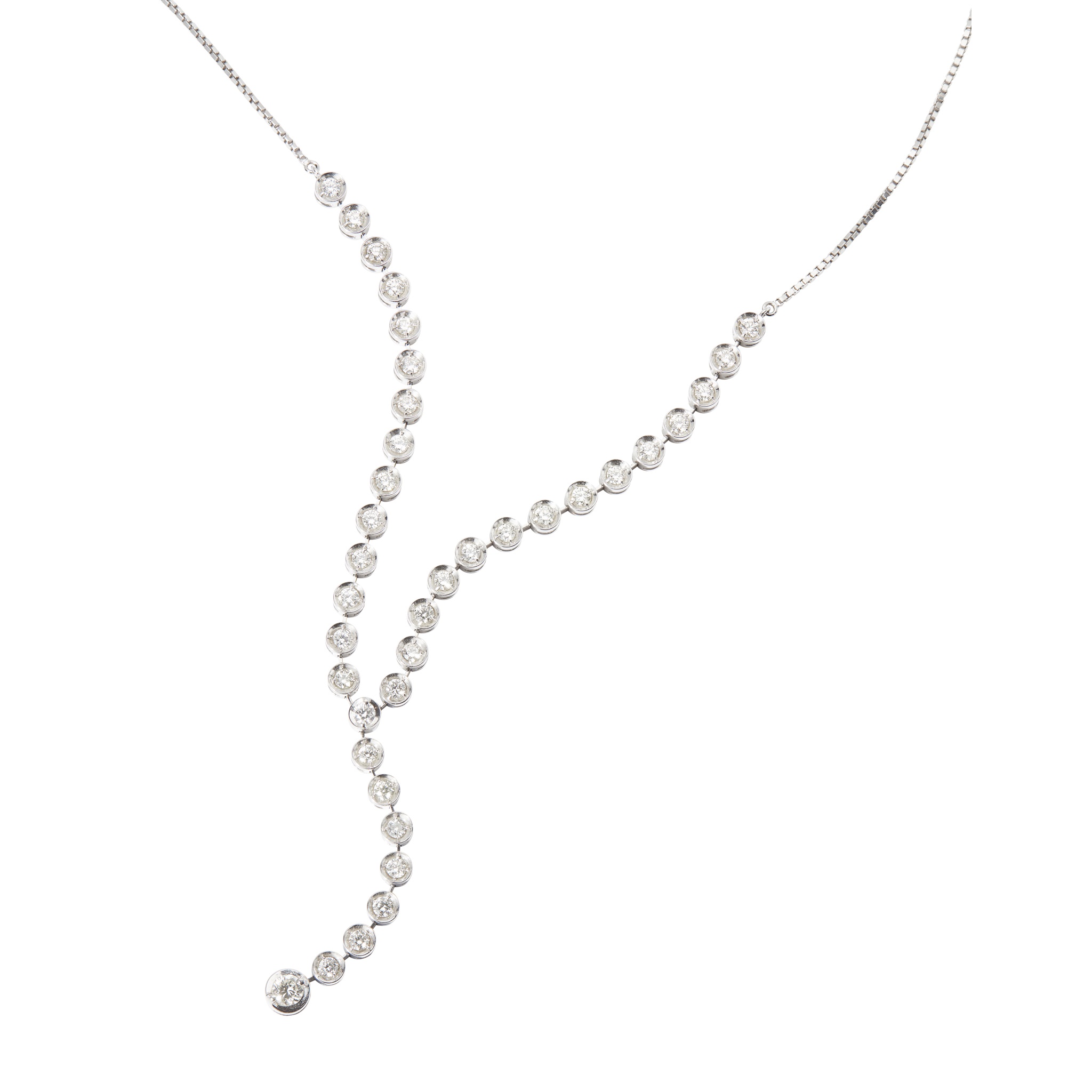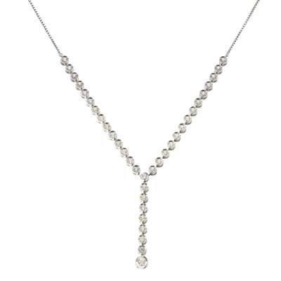 composed of circular links, each set with a small round brilliant cut diamond, suspending a similar articulated drop, to a box link clasp, to an 18ct gold box link chain