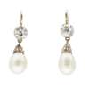each claw set with an old round cut diamond, suspending a drop shaped natural pearl in a rose cut diamond set mount, to hook fittings, unmarked; with accompanying report from The Gem & Pearl Laboratory, dated 16.08.19, numbered 17680, stating that the pearls are of natural saltwater variety