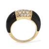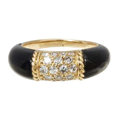of bombé form, the centre panel pavé set with eight-cut diamonds between rope-twist borders, to shoulders set with carved onyx, in the style of Van Cleef & Arpels, with French mark for gold