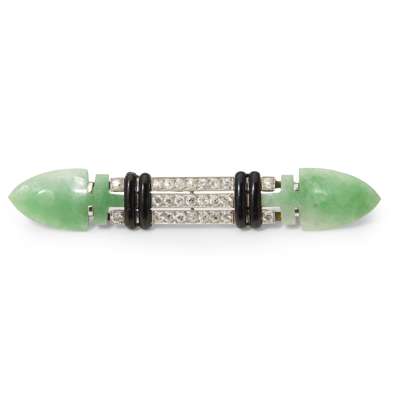 An Art Deco diamond, jade and enamel set brooch, Boucheron