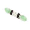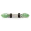 set with three rows of old round cut diamonds, with black enamel detail and terminating in two polished 'arrow-head' jade panels, signed to reverse 'Boucheron Paris,' with indistinct French control marks