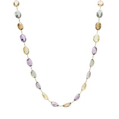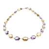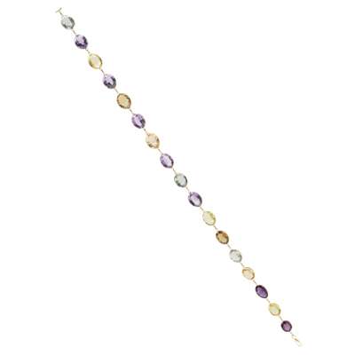 spectacle set with oval mixed cut amethyst, citrine and blue topaz, to an 'S'-shaped clasp stamped '585'