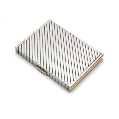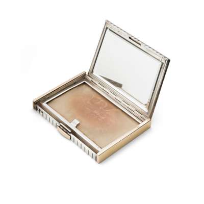 Of reeded design with polished sides and thumbpiece, opening to reveal a mirror and powder compartment, signed Cartier Paris, numbered, French assay marks, maker's marks