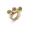Each designed as a stylised tulip, set with a brilliant-cut diamond and circular-cut sapphire, emerald or ruby flowerhead cluster, mounted on a ropetwist band