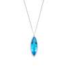 The marquise-shaped fancy-cut blue topaz within a brilliant-cut diamond surround, to a pear-shaped diamond surmount, suspended from a fine palmier-link chain