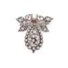 Designed as a foliate surmount, suspending a pear-shaped drop with a flower swing centre, set throughout with old mine-cut diamonds, mounted in silver and gold, detachable pin fitting, one diamond and pendant loop deficient, in fitted case