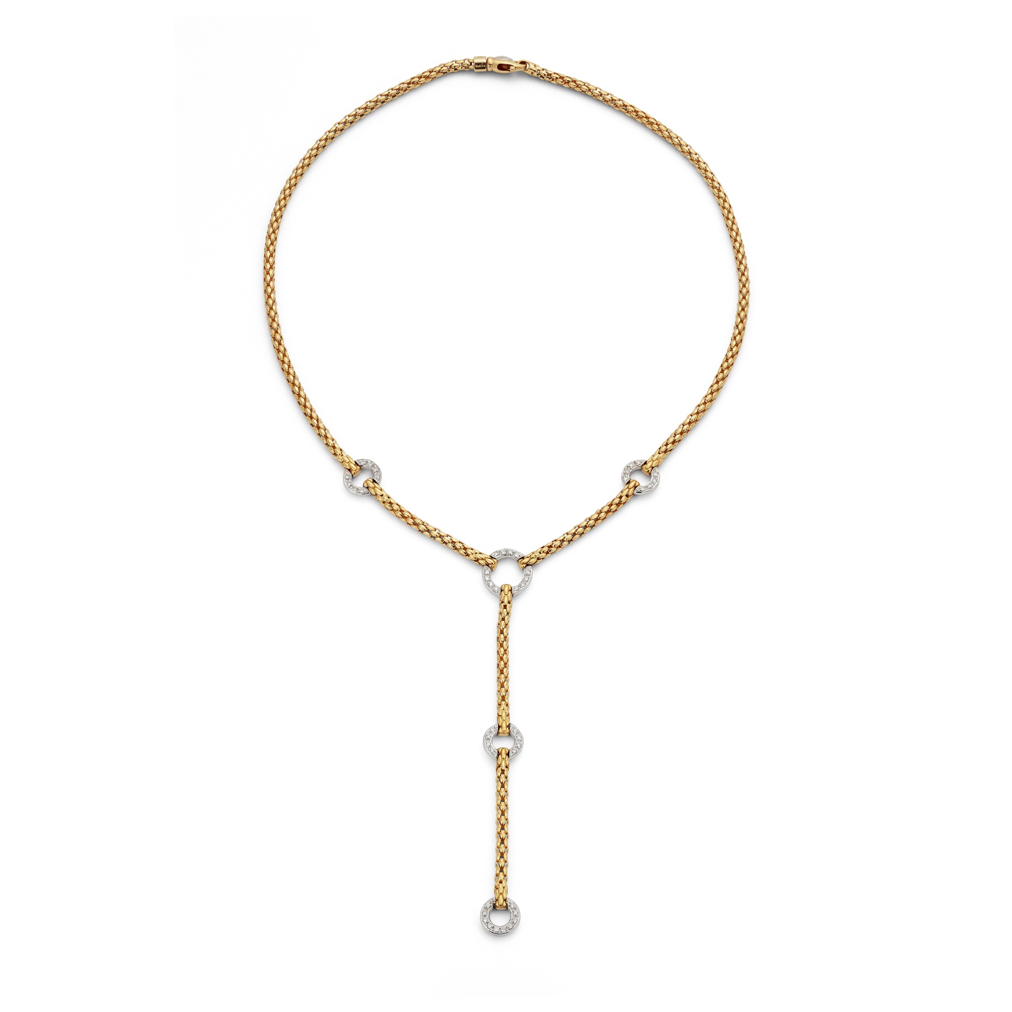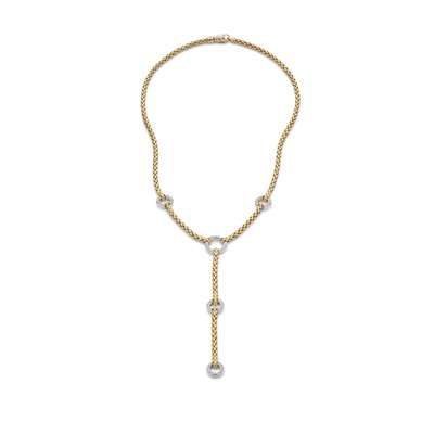 Designed as a brick-link rope, accented with brilliant-cut diamond-set circlets, suspending a similarly-designed drop, signed Fope