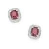 Each rectangular cushion-shaped ruby, within a two-row brilliant-cut diamond surround, post fittings