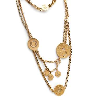 Composed of multiple chains of various linking, set with circular plaque spacers and pendants, decorated with various diamond-set motifs, signed Chanel, numbered, maker's case