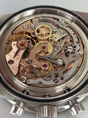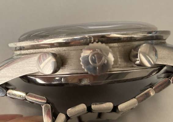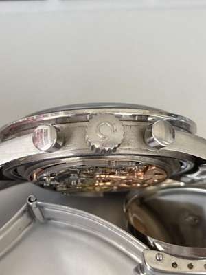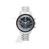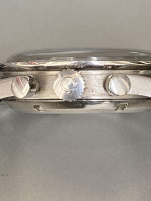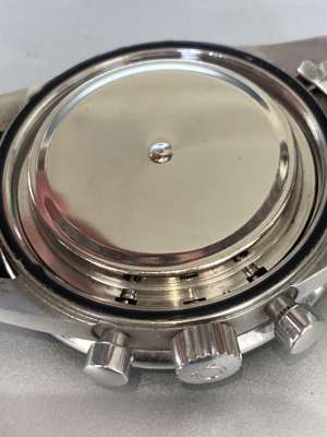 Speedmaster model ST105.003-65, 'Ed White,' c.1967 from serial number, stainless steel case, signed Omega calibre 321 manual wind movement, round black dial with lume baton hour markers, sunken subsidiary dials with inclining border at 3, 6 and 9, for 30 minute register, 12 hour register and small seconds respectively, outer seconds track in white, lume-filled pencil hands, centre seconds hand with lume-filled terminal, black bezel with tachymeter scale, crown with Omega logo flanked by twin cylindrical push-buttons, the caseback with SPEEDMASTER, Omega logo and hippocampus, on a stainless steel bracelet strap with 633 to one end link and 6 to the other, signed foldover clasp with micro-adjustment facility, with Omega logo to the exterior and OMEGA 7912, 461 to the interior, no box and papers