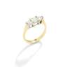 The princess-cut diamond between triangular-cut diamond shoulders, mounted in 18ct gold, UK hallmark