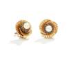 Each designed as three overlapping reeded scrolls to a central 7.66mm cultured pearl and circular-cut sapphire cluster, clip fittings, French assay and maker's marks