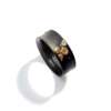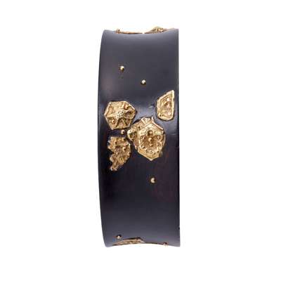 The concave African blackwood bangle applied with abstract motifs, some underlayed with abalone shell, unsigned