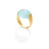 The oval cabochon aquamarine to a tapered 18ct gold hoop of brushed finish, UK hallmark