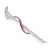 The curved bar millegrain-set with old brilliant and single-cut diamond terminals, applied with a curved scroll of graduated synthetic rubies, to an engraved gallery