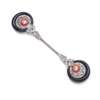 Each circular terminal set with an old brilliant-cut diamond within a coral, corallium rubrum, and pierced rose-cut diamond surround and onyx frame, to a foliate base and engraved gallery, mounted in platinum and gold