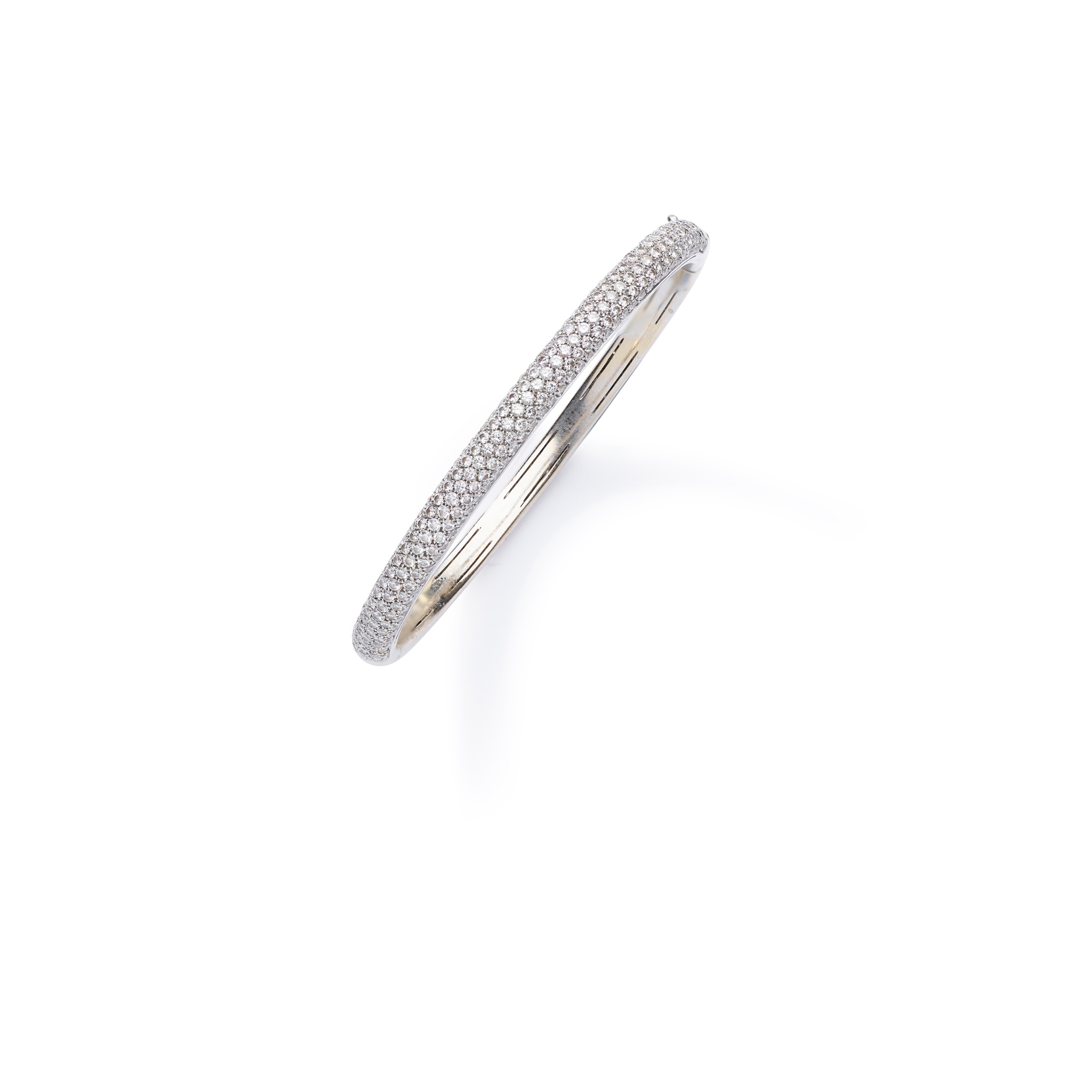 The hinged bangle pavé-set to the front with brilliant-cut diamonds
