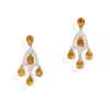 Each pear-shaped citrine surmount suspending a brilliant-cut diamond frame with pear-shaped citrine swing centre and three-stone drop, post fittings