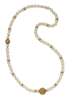 The single row of 8.80-9.55mm cultured pearls interspersed with diamond-set rondelles and two openwork beads accented with brilliant-cut diamonds, divides into a necklace and two bracelets, or two necklaces, three diamonds deficient