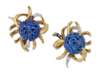 Each carved lapis lazuli bead within a bi-coloured swirl surround of textured finish, clip fittings, one clip fitting deficient
