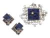 Each carved square lapis lazuli plaque, within a geometric surround of 18ct white gold square tubes and textured cubes, accented with brilliant-cut diamonds, earrings with fittings, maker's marks, earrings with partial UK hallmark