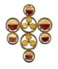 Designed as a series of connected textured circlets with yellow or red enamel circular plaque centres