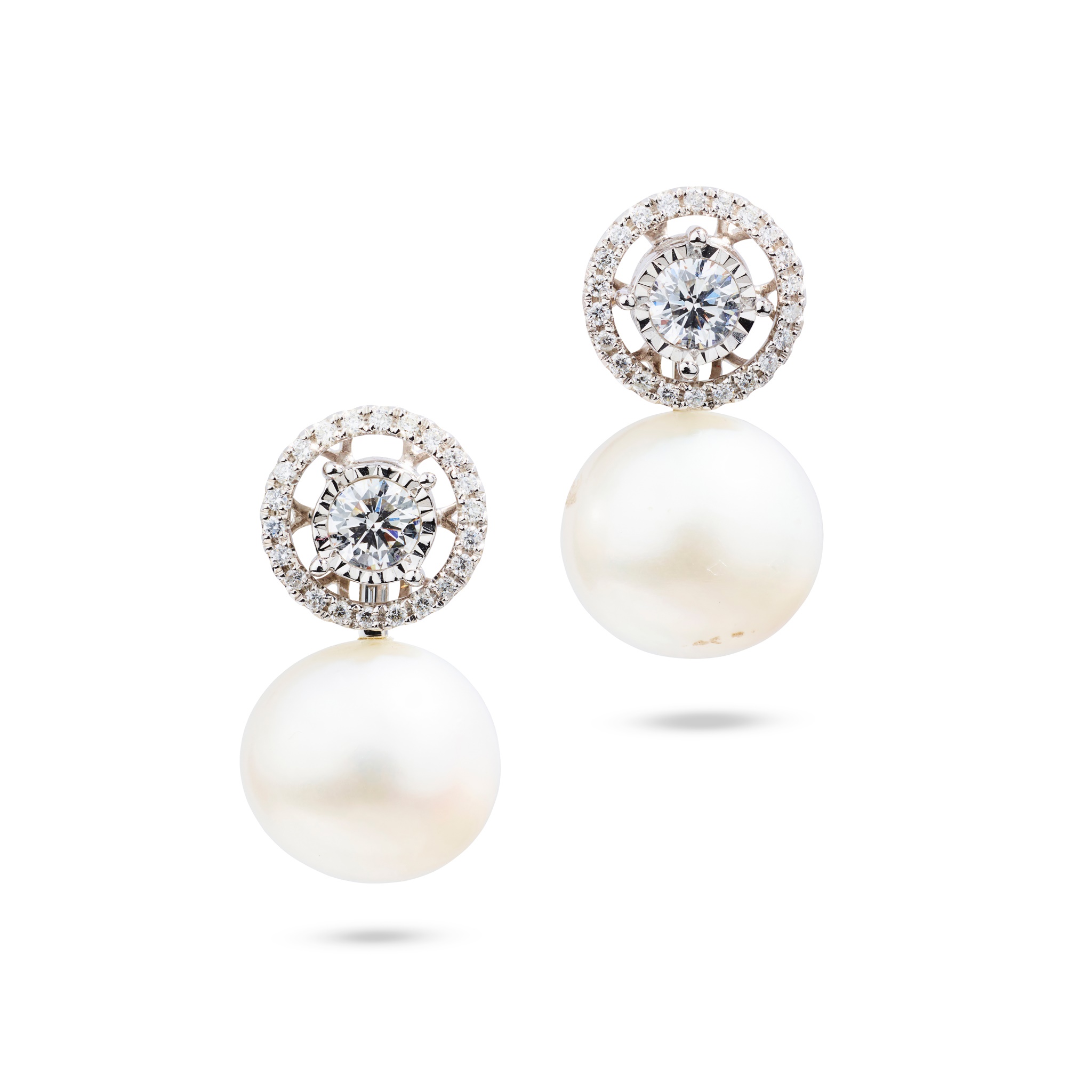 A pair of cultured pearl and diamond earrings