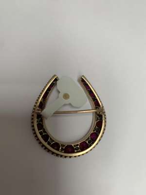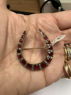 Set with a graduated row of oval-cut rubies, with rose and old-cut diamonds between, mounted in silver and gold
