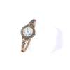 The circular white dial with Roman numerals and blued steel hands, within an old single-cut diamond double row surround, between tapered shoulders set with old brilliant and single-cut diamonds, to a knife-edge bar hinged bangle, winder deficient, inside case with UK import mark, London 1907, sponsor's mark AB, numbered