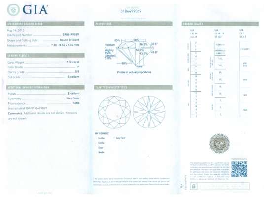 Accompanied by a copy of a GIA report stating that the round brilliant-cut diamond, weighing 2.00 carat, is F colour, Si1 clarity, with no fluorescence. Report no. 5186499069, dated 14th May 2015.